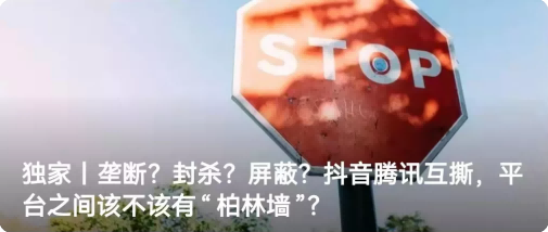 1、独家丨垄断?封杀?屏蔽?抖音腾讯互撕,平台之间该不该有“柏林墙”?