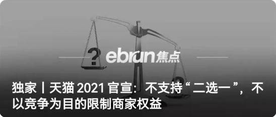 1、独家丨天猫2021官宣:不支持“二选一”,不以竞争为目的限制商家权益