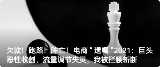 4、欠款!跑路!阵亡!电商“遗嘱”2021:巨头恶性收割,流量调节失灵,我被拦腰斩断