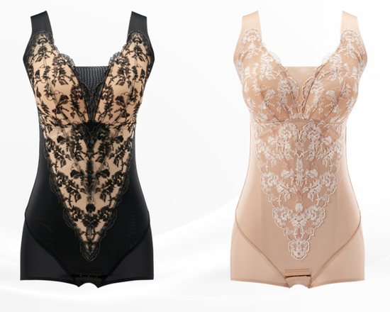 莱萨琪塑身衣大片蔷薇花刺绣与V形美学的结合,整体呈现水晶般光滑色泽,典雅神秘,令人向往。