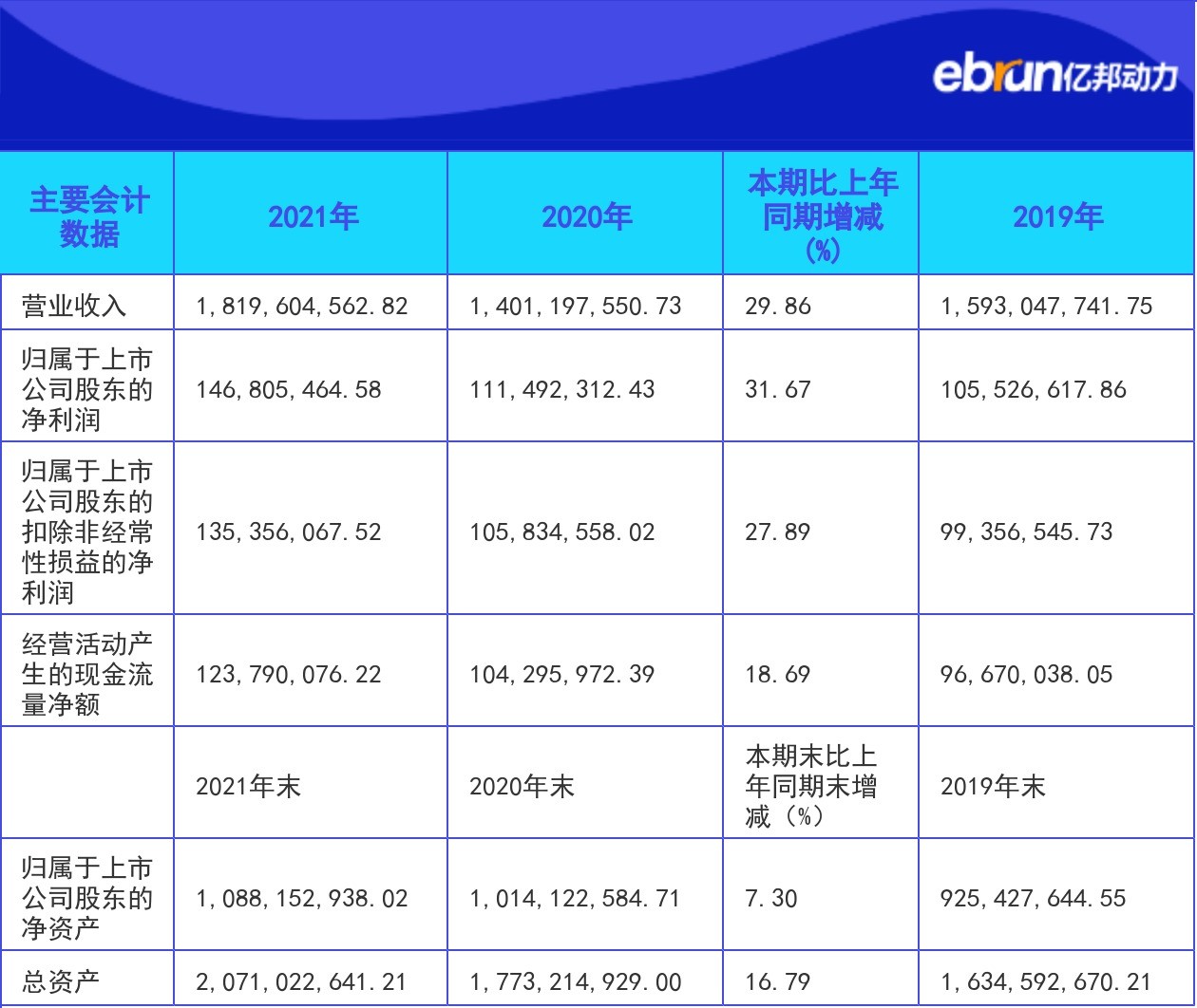 4月19日消息,亿邦动力获悉,朗迪集团公布2021财年全年财报。财报数据显示,报告期内朗迪集团营收达18.20亿元;净利润达1.47亿元。本报告期末,经营活动产生的现金流量为1.24亿元。