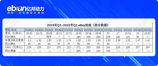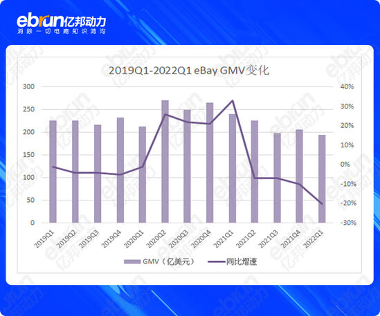 3、eBay:营收同比下降6%,GMV同比下降20%