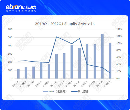 2、Shopify:总营收同比增长22%,GMV同比增长16%