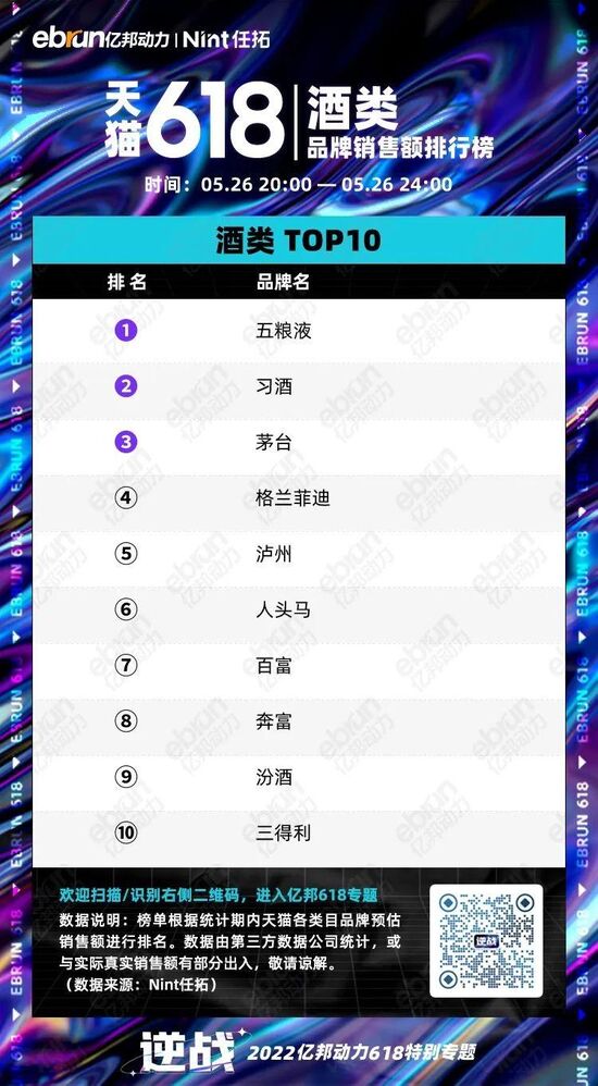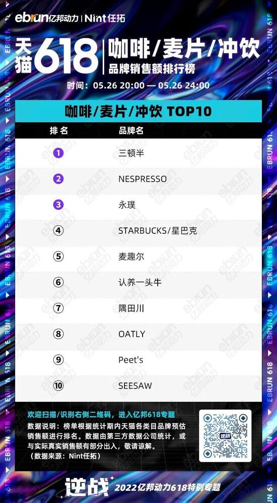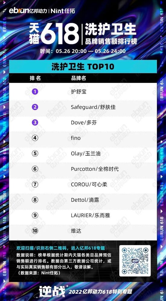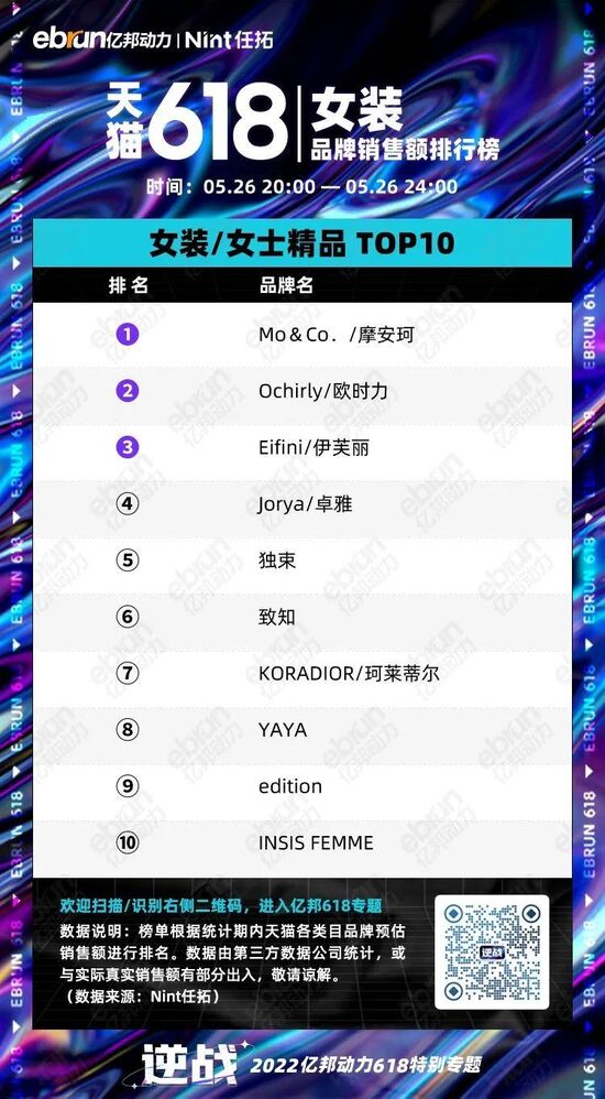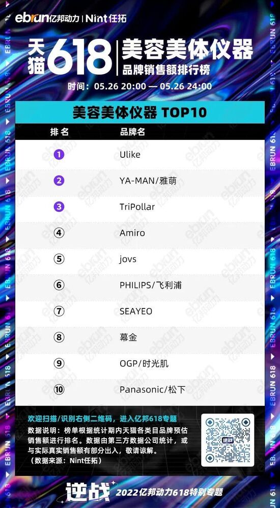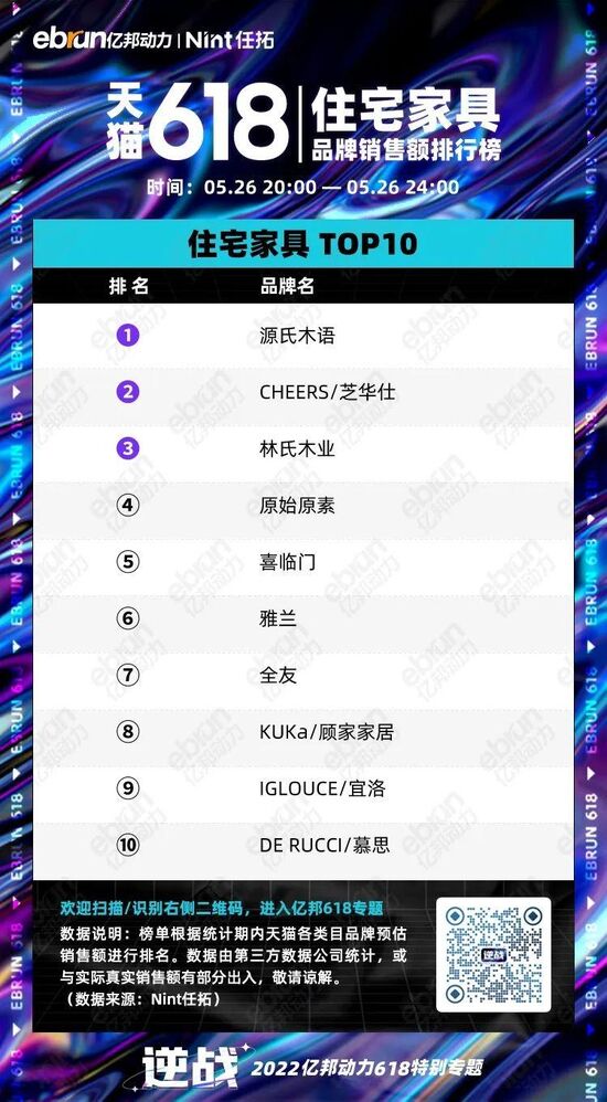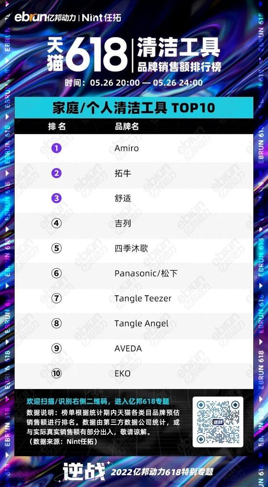 数据说明:榜单根据统计期内天猫各类目品牌预估销售额(预售期“定金+尾款”总额)进行排名。数据由第三方数据公司统计,或与实际真实销售额有部分出入,敬请谅解。(数据来源:Nint任拓)