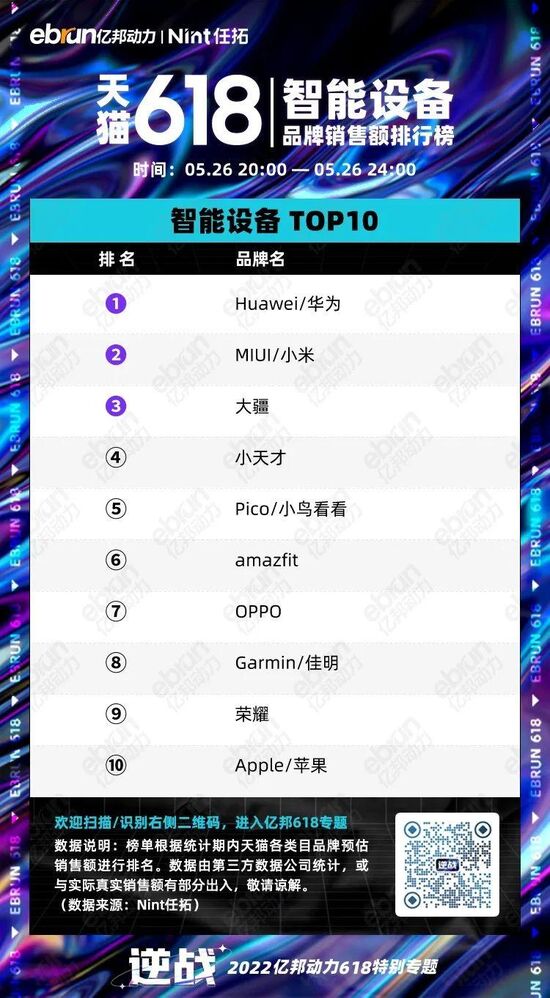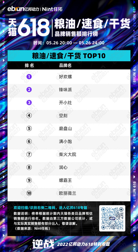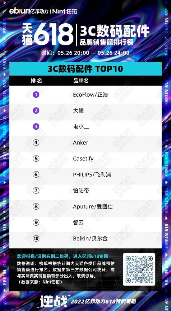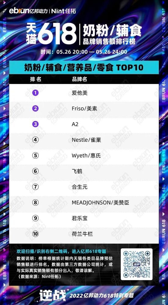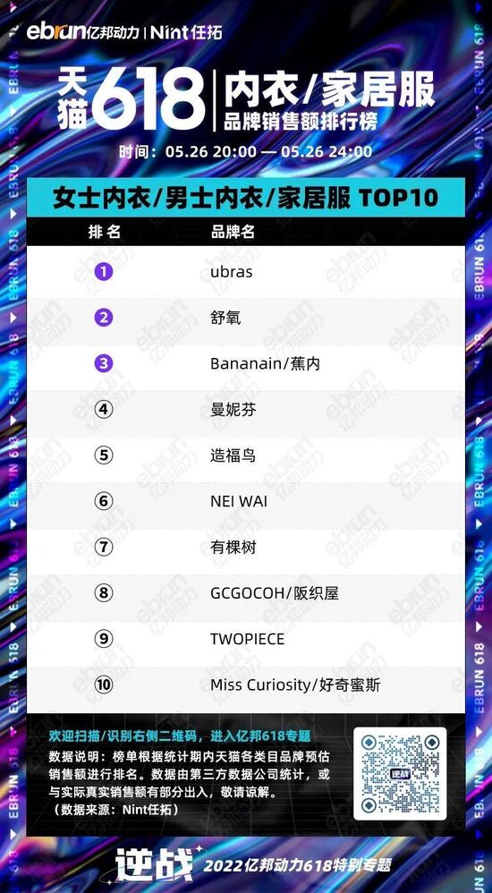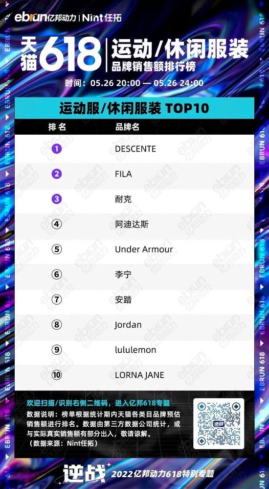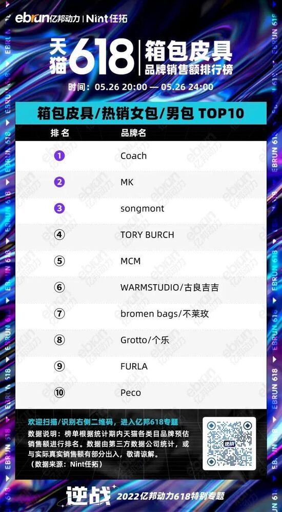 数据说明:榜单根据统计期内天猫各类目品牌预估销售额(预售期“定金+尾款”总额)进行排名。数据由第三方数据公司统计,或与实际真实销售额有部分出入,敬请谅解。(数据来源:Nint任拓)