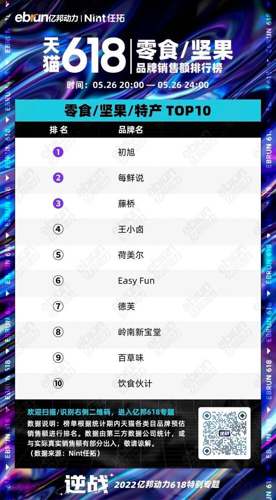 零食坚果的4小时榜单中,卤味、预制食品霸屏,初旭、藤桥、荷美尔、王小卤等上榜,每鲜说、Easy Fun等轻食品牌也位列榜单之上,去年上榜的部分糖果巧克力品牌被取代。