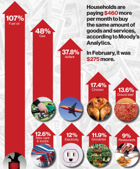 有专家表示:“美国家庭在8.5%的通胀率下的每月多花460.42美元。”
