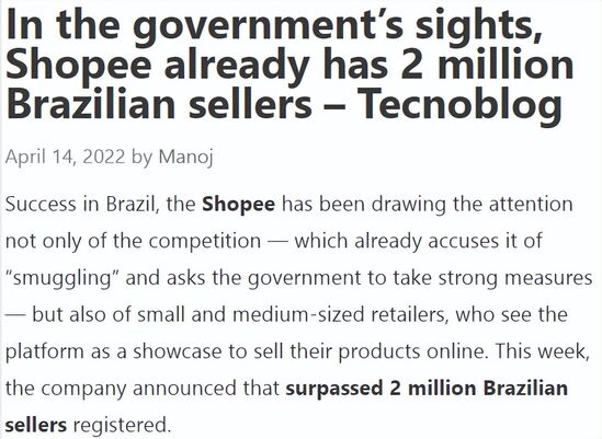 据FepeePiringer统计,截至今年4月,Shopee巴西站约有200万家本地卖家门店。截至2021年10月,Shopee在巴西拥有本地卖家门店的数量约为100万家。在不到一年的时间里,本地卖家门店的数量翻了一番。