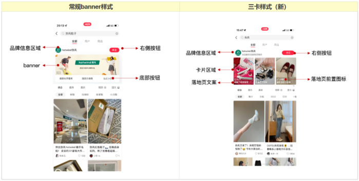 而此次品牌专区更新的三卡样式,对比原本的单图Banner,能够展示更多的品牌营销内容。多卡片,可以同时展示不同的产品、不同的活动等营销信息;卡片下方的落地页图标组件,按钮更加显眼,还可配上文案引导用户点击,加强转化效果;样式的图片应用也更加方便,可直接拼接优质的笔记封面,省去设计banner。简单来说,三卡样式就是优化后的品牌专区,今后在品牌进行营销推广时,可以帮助品牌更好地承接高意向用户,实现多场景的引导转化。