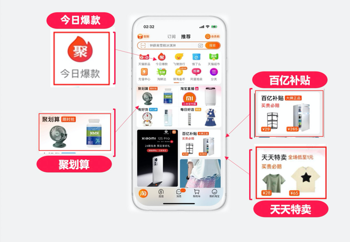 诞生之初,聚划算即聚焦于“划算”二字,对消费者主打“淘宝最低价”心智,对商家而言,则是打爆单品的经营场域。回归心智的具体动作是:围绕“聚百天”(聚划算、百亿补贴、天天特卖三大频道合一),重点推广“10点抢购”“百亿补贴”“百亿官播”“划算8点半”等IP,为商家提供更具确定性的经营支持。