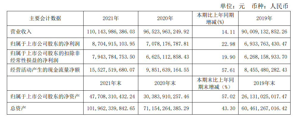 业绩表现上,据伊利股份2021年年度报告显示,公司实现营业总收入1106亿元,较上年同期增长14.15%,净利润87.32亿元,较上年同期增长23%。