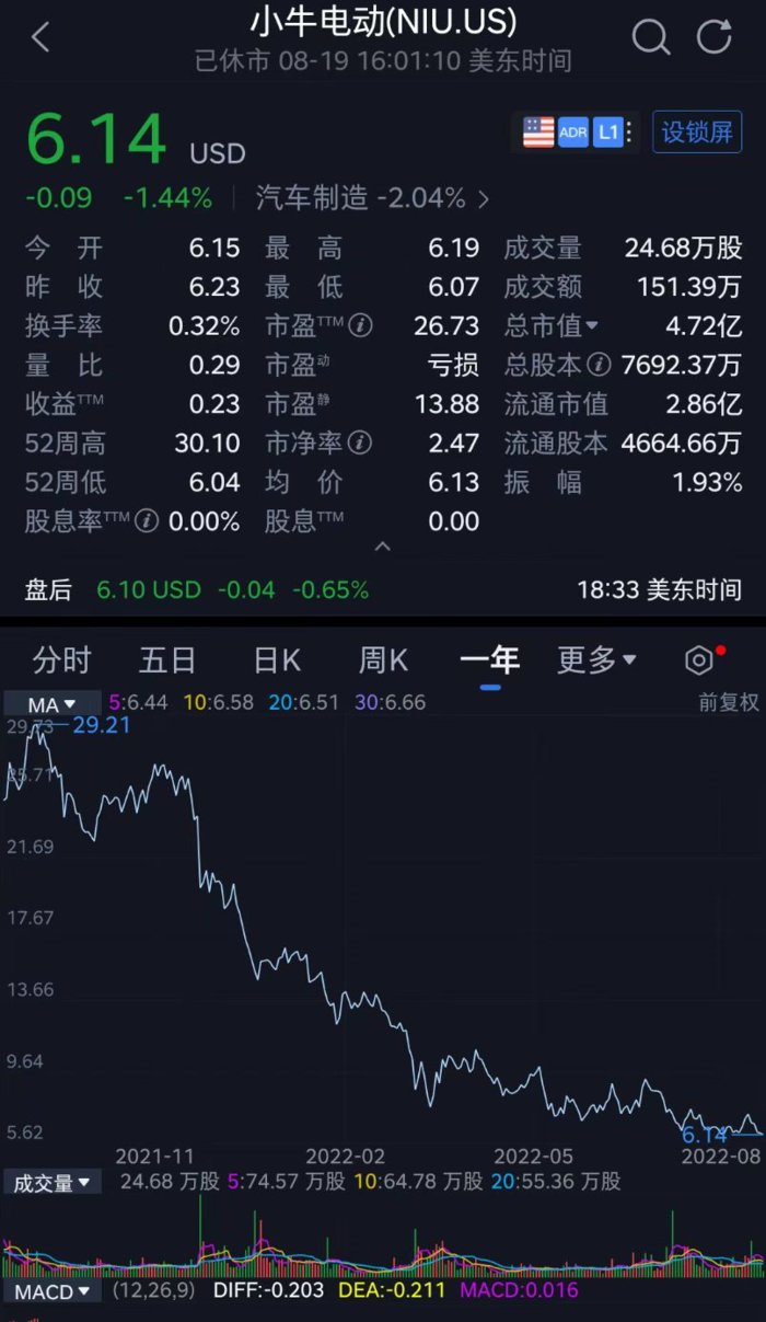 小牛电动2022年二季度营收8.276亿元 股价较年内高点暴跌近60%