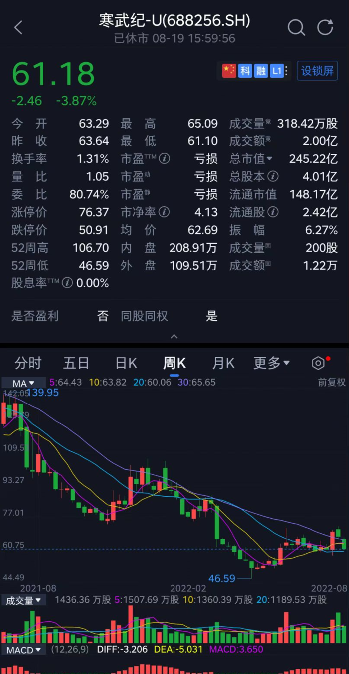 寒武纪2022年上半年净利润-6.22亿元 两年市值下降超800亿