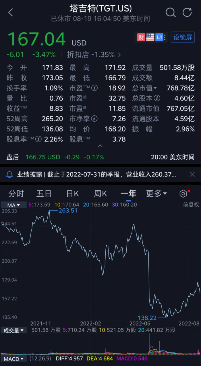 财报显示,塔吉特二季度营收为260.37亿美元,同比增长3.5%,略低于市场预期;净利润为1.83亿美元,同比暴跌89.9%;摊薄后每股收益为39美分,不及市场预期的72美分;上年同期为3.65美元。