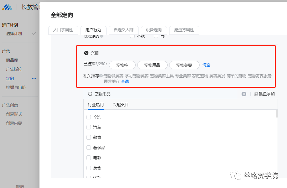 基于大数据的背景下,每个消费群体的日常行为习惯往往都会被大数据标签,线上渠道可匹配精准客群,结合各自的业务特点,结合人群、地理位置,以及宠物,宠物美容,宠物用品等兴趣偏好定向,瞄准目标养宠人群,精准投放广告,增加广告的转化效益。