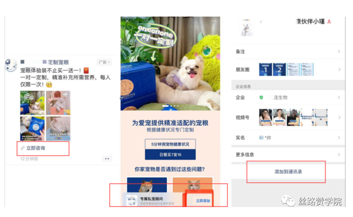 针对宠物寄养,训导,美容等服务特征,腾讯广告特别定制了附近推领券链路—实现活动引流,表单收集链路—实现客户留资,一键加企微链路—实现私域沉淀(如下)等推广目标,不仅如此,内层落地页还能直链微信小程序商城,“种草”后一键购买,快速成单。