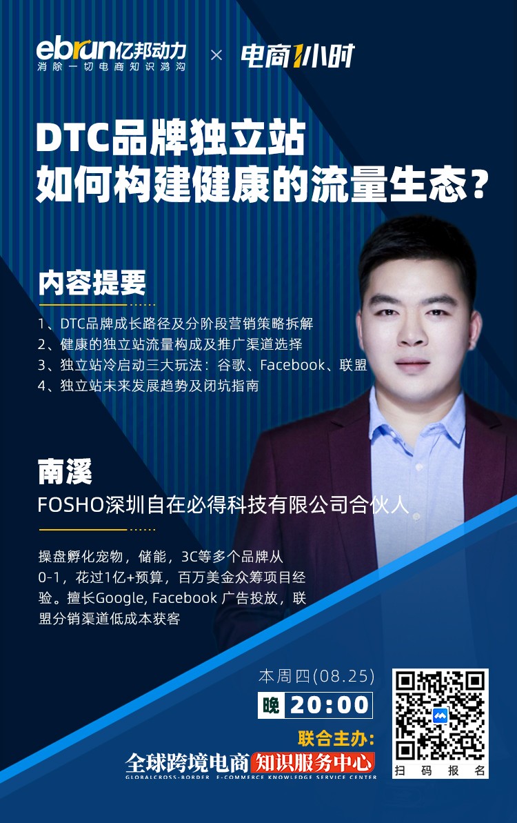 本节课,我们将邀请FOSHO(深圳自在必得科技有限公司)合伙人南溪作为特邀讲师,围绕以上问题为广大出海商家,领你走进DTC品牌独立站的健康流量生态,为你详细拆解独立站的推广渠道选择、冷启动策略、未来发展趋势及闭坑指南。