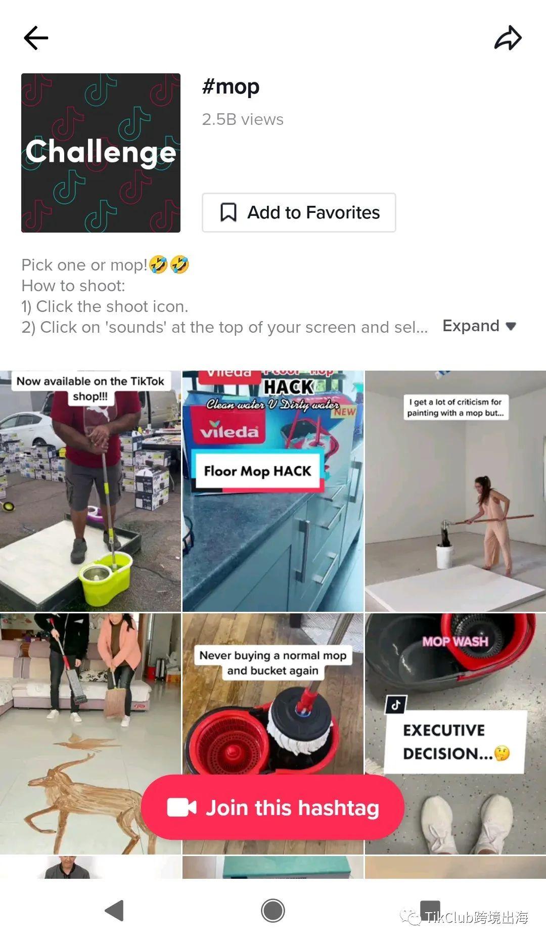 TikTok上与旋转拖把+桶清洁组合相关的热门标签,比如#mop,目前就累计播放量超过25亿次,热度不俗。