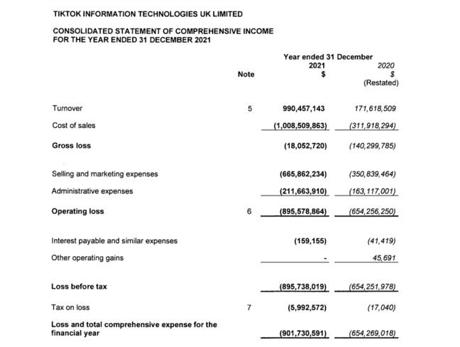 不过,TikTok也在文件中披露了其8.96亿美元的年度运营亏损 ,与2020年的6.542亿美元亏损相比,增长超三分之一。