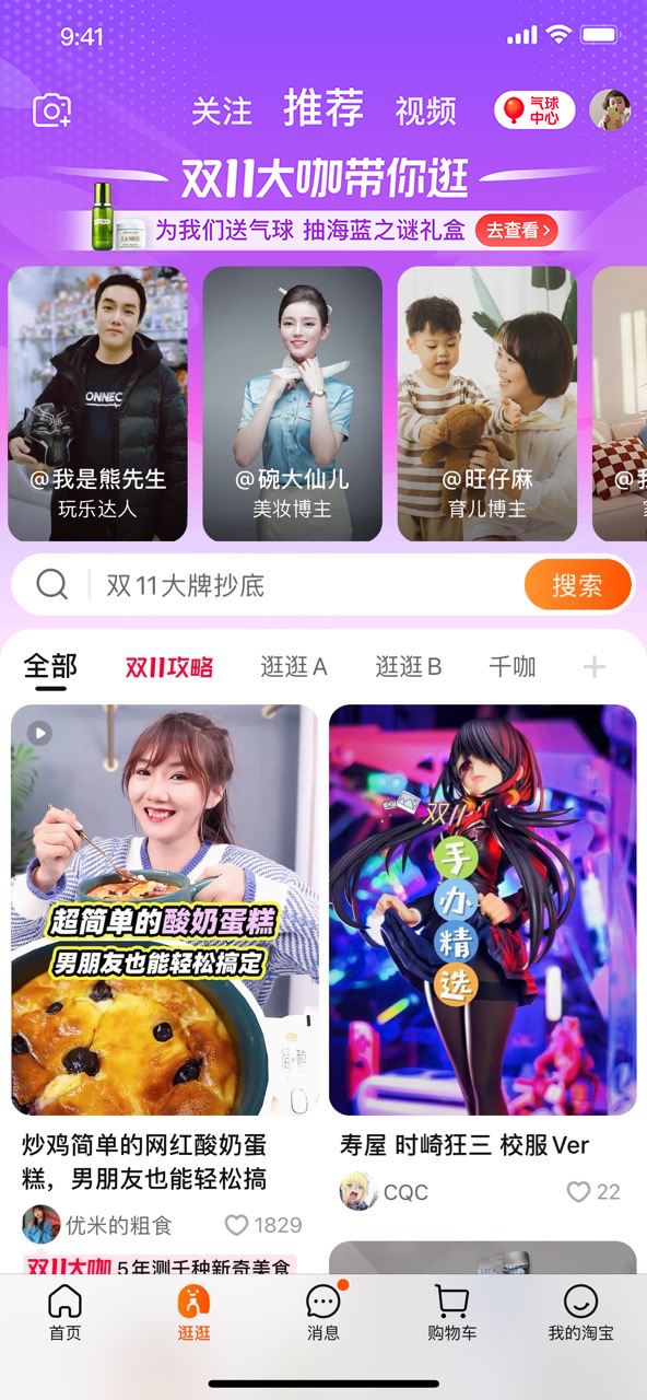 今年天猫双11,超过1000位的专业领域内容达人集体入驻淘宝逛逛。他们来到逛逛都有同一个目的:与用户一起发现天猫双11值得买的宝藏单品,传授天猫双11省钱攻略,发现时下生活趋势。