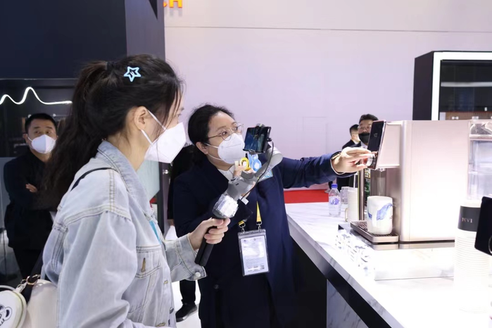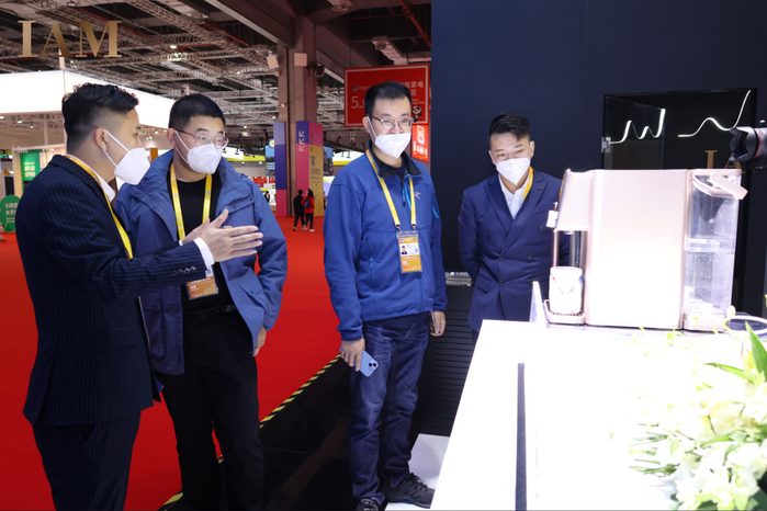 为了更直观地展示新产品新技术,推广健康饮水方案,IAM还在展区展台布置方面做了精心安排,既注重全面展现品牌文化,又注重通过互动体验拉近品牌与参观者的距离。自开展以来,位于消费品展区5.1馆B3-01展位的IAM的展区人头攒动,许多参观者慕名而来,亲身体验IAM矿物熟水机X6S的黑科技,尤其是众多女性参观者,对于这款新产品主打的“健康”饮水的特色尤为感兴趣。