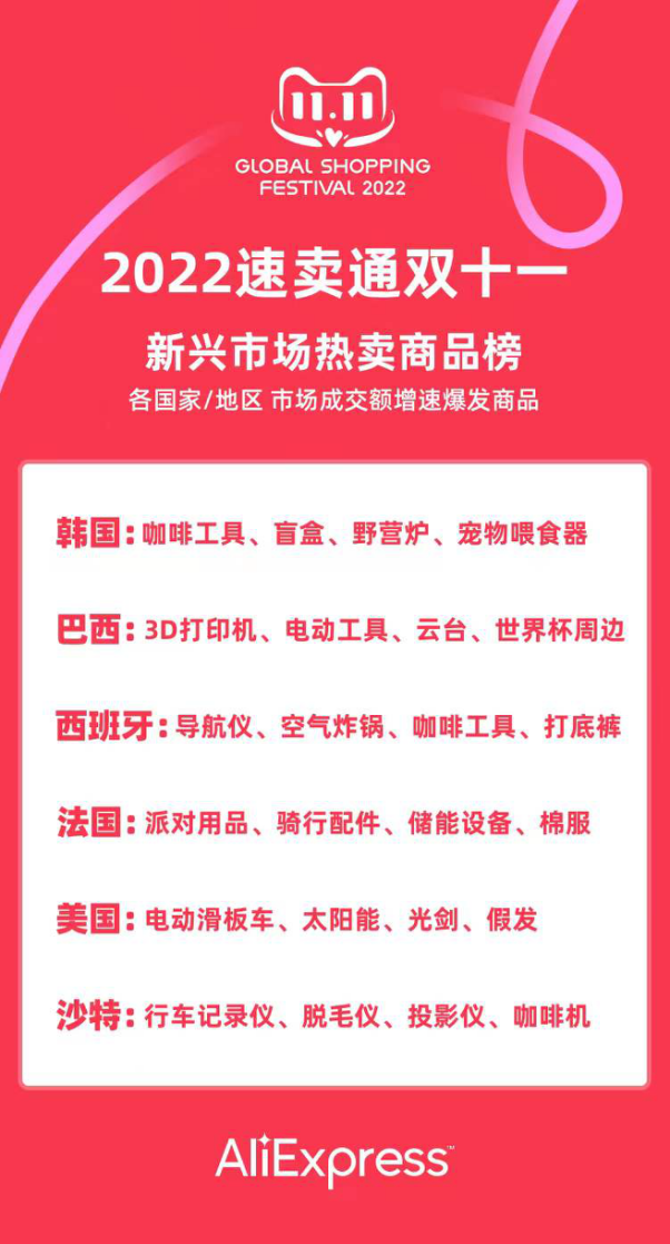 2022速卖通双十一中,速卖通上汽车智能盒子,同比去年双十一提升了10倍以上,有商家的爆款单品仅仅几天就在西班牙、沙特、韩国、以色列等国家和地区市场冲破了数千单。