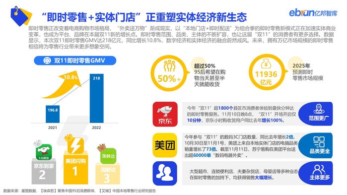 今年双11,平台流量分散趋势俞强,各平台为寻新增量纷纷深化”种草-交易“机制。以“本地门店+即时配送”为组合拳的即时零售新模式正在加速实体商业变革,也成为平台、品牌在本届双11新的增长点。