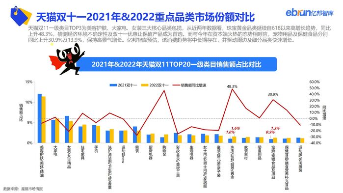 本次双11,有老品牌折戟,也有新品牌涌现。有旧行业退出时代洪流,也有新品类横空出世。亿邦智库特发布《2022年电商双十一生态洞察报告》,力图为读者还原本次双11线上零售消费全貌。