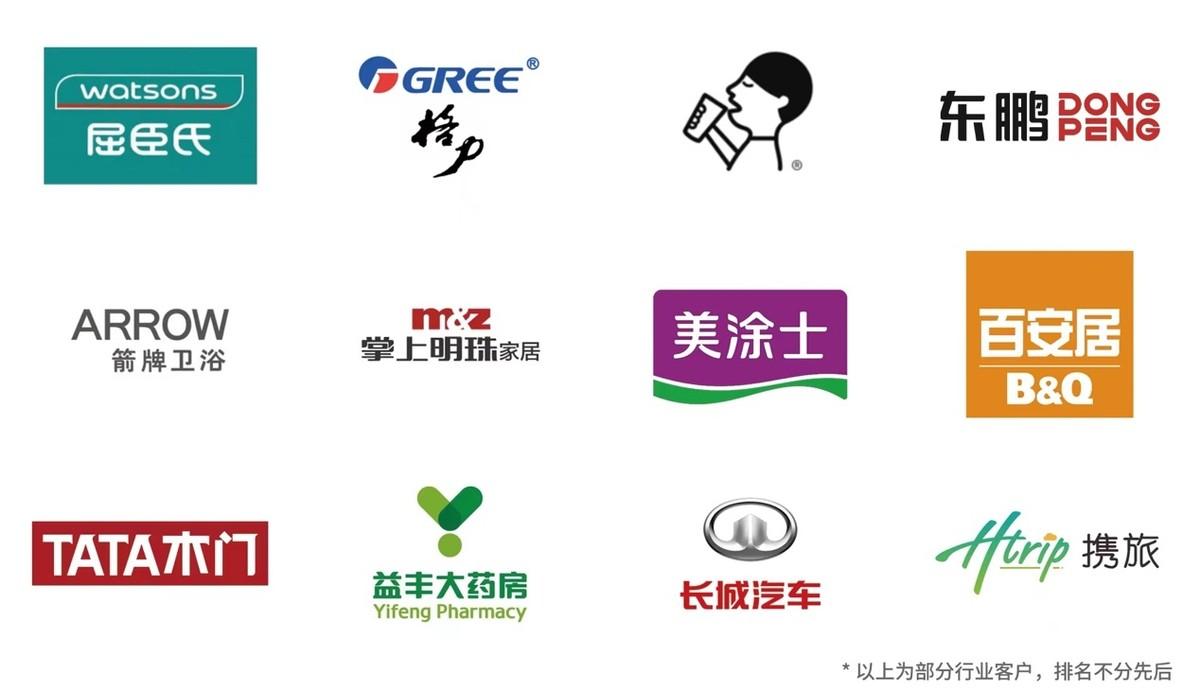 惟客数据已服务屈臣氏、百安居、格力集团、喜茶、东鹏、掌上明珠、箭牌卫浴、大参林、益丰大药房、长城汽车等30余家泛消费零售行业客户;此外,在不动产领域,中国前10强的房地产企业有7家选择惟客数据,碧桂园、保利发展、融创中国、绿城集团、旭辉集团、美的置业、越秀地产、万达集团等头部地产企业都是惟客的客户。