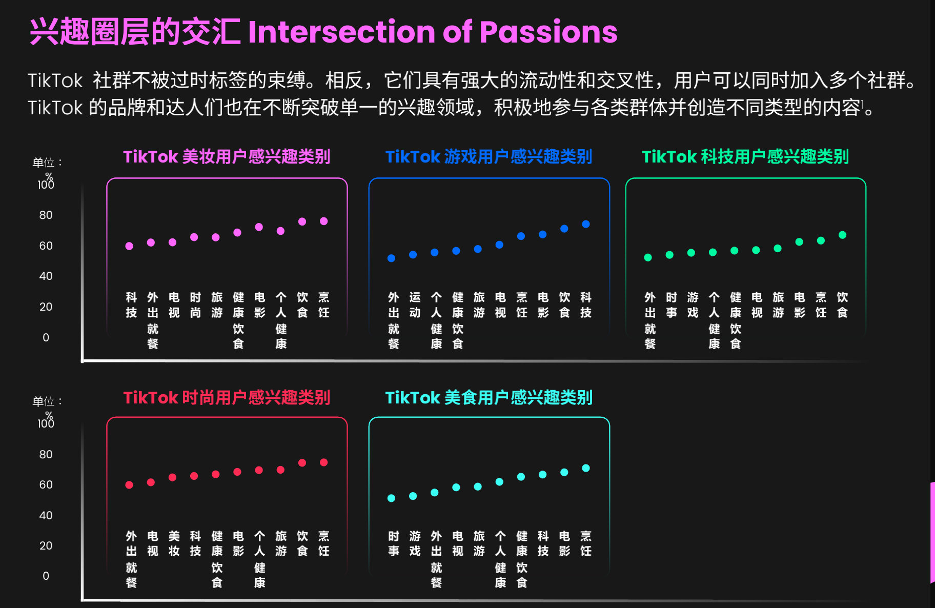 根据报告内容,由于平台内容分发机制不同,开放性的社群在许多平台上并不总能成为焦点;排他性和精英主义等因素也意味着小众社群无法快速吸引用户。然而,TikTok社群具备开放性和民主化的氛围,与其作为旁观者浏览少数“精英”所创造的内容,TikTok的用户们更偏爱参与到各个垂直群体之中,和大家一起创作与互动。同时,TikTok上不存在社会阶级或主流文化,多元社群赋予了每个用户基于个人兴趣展现不同身份的机会