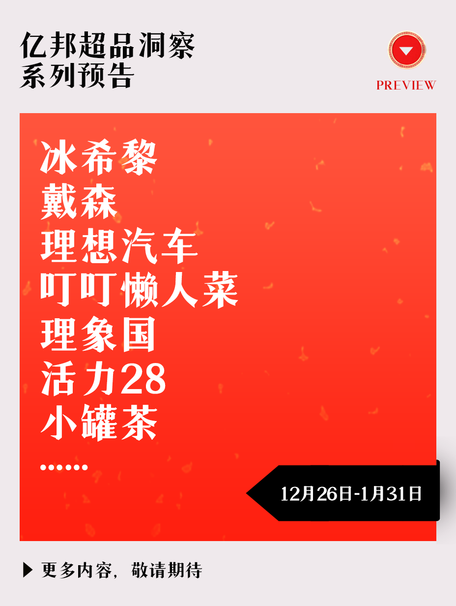年货节期间,亿邦特别策划了“超品洞察”系列研究,选取全球众多品类中极富新潮礼品特质的消费品牌。这些品牌是逆经济周期下增长奇迹的缔造者,也是大消费赛道辞旧迎新的惊鸿一瞥。他们在商业实践中表现出的品类嗅觉、用户共情、产品信仰、品牌与数字化理解力等,无论褒贬,都有着显著的标杆意义,并对中国当下乃至未来消费行业、企业极具参考价值。