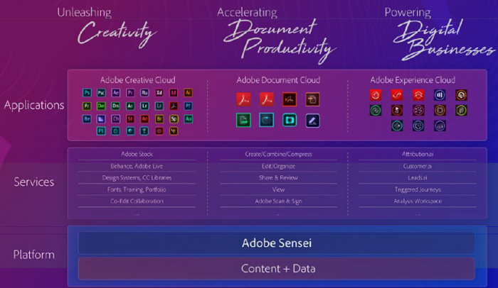 因而,在一次董事会上,山塔努提到:“我想,我们的业务已经开始停滞不前,我们面向客户的现有业务不足以保持高速增长,现有的(创意软件)市场正在趋向饱和。”言外之意就是,Adobe不该仅停留在为客户提供工具的层面,而应该进一步协助客户管理、分析,并利用内容获得收益。