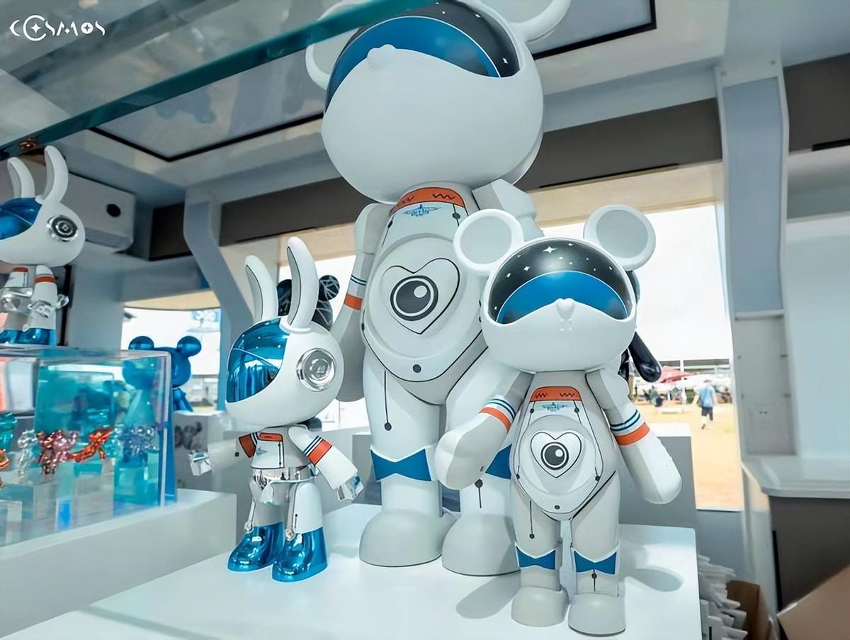 除了和品牌联合创造消费产品,星际熊会以IP本身的形象广泛会地产、商场、酒店、汽车等行业品牌合作,行业头部是星际熊首选的合作对象:地产行业的碧桂园、保利,万科,汽车领域的阿斯顿马丁、保时捷、宾利,以及万象,华润、新城等商业地产。值得关注的是,星际熊还成为了中国航展唯一合作的中国原创IP品牌,设计了很多联名款产品。