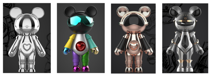 2022年,经过十几个人组成的设计团队研发,星际熊推出了725mm尺寸的“机械熊”。透明的外壳内部,整个熊身都由3D打印的机械零部件组成,细节部件甚至可以看到3D打印特有的肌理纹路;每个零件均要单独手工制作、上色拼接,整个产品没有选择传统的精细化处理,而是保留了手工痕迹。这款“机械熊”产品数量只在两位数以内,而作为“潮玩里使用零部件最多的产品”,星际熊正为它申请吉尼斯纪录。