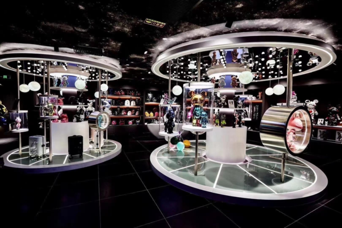 在星际熊公司总部,有一个3000多平的展厅,用于展示已经上市和最新研发出来的所有产品。据透露,自主研发的潮玩产品加上向各类品牌联名产品,星际熊已经拥有数十万个SKU。