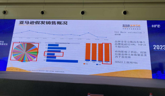 除了线下,线上市场也在快速增长,比如抖音。不久前,2023年郑州发博会期间,抖音电商假发行业运营经理陈奕豪介绍说:“2022年,抖音电商假发成交额同比上年增了191%,抖音电商在假发市场占有率提高18%。”
