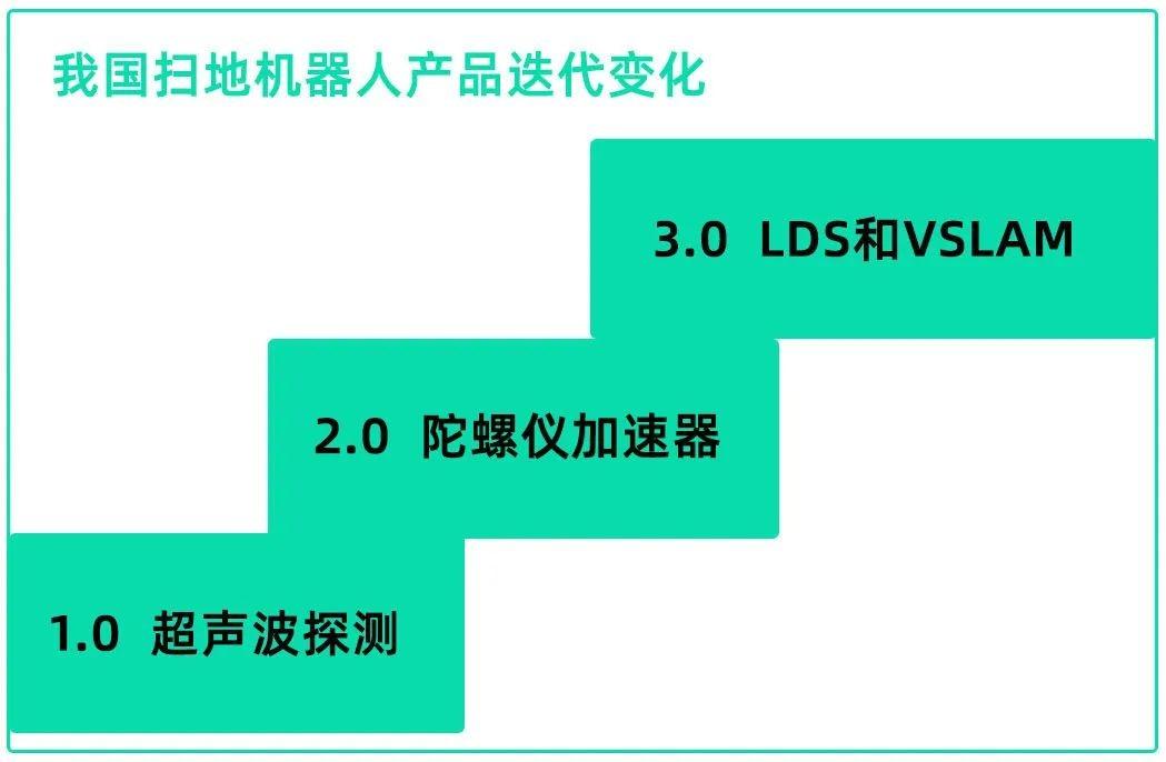 我国扫地机器人的产品迭代大概分为三代:第一代依靠超声波探测实现避障;第二代依靠陀螺仪加速器,因为随机碰撞的清理精确度低,又被戏称为“人工智障”;直至以LDS(激光定位)和VSLAM(图像位移定位)的第三代方案推出,精确度和效率大大提升,我国扫地机器人才迎来黄金发展期。