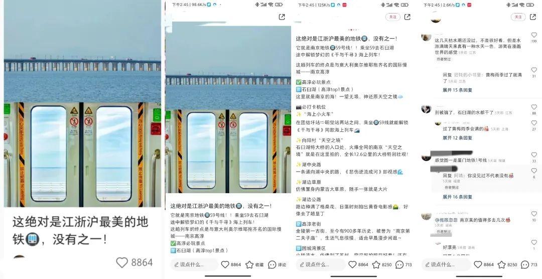 小红书爆文内容:与其说是推荐地铁的美,不如说是一处美景的攻略。作者在介绍的时候特别详细,交通到景点的特色都讲解的明明白白的。