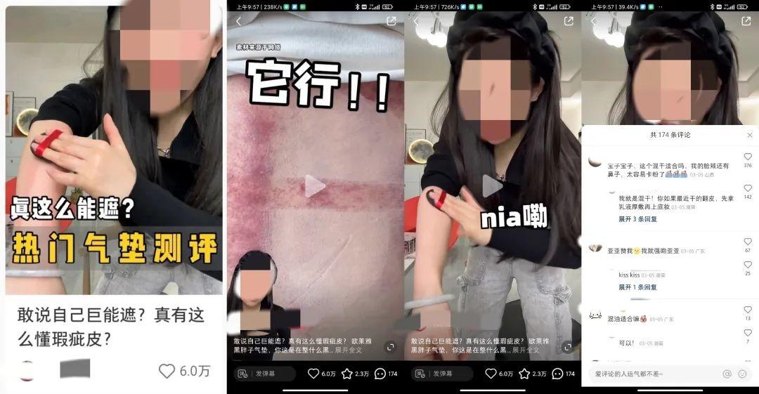 抄作业:测评类的展示本来就是让大家更直观的看到产品的好坏,而博主在展示遮瑕的同时站真的就把瑕疵最大化,把大家所担心的问题逐一展示,打消用户的顾虑,对于产品的种草来说,用户回应更有分量。