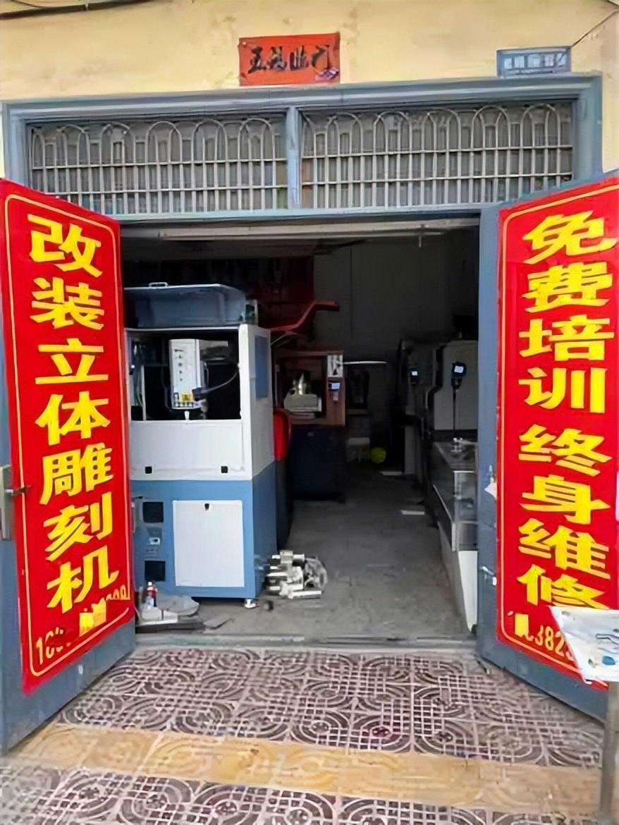 亿邦动力走访市场了解到,当下一台平面浮雕机价格在千元级别,一台4轴立体圆雕机价格尚不足万元,以家庭为单位投入十万元即可开设中等规模的玉雕加工厂。整个石佛寺玉石产业带已经普及机雕加工,平面浮雕机、立体圆雕机随处可见。当地的玉雕机代理商同时也会开放自家设备接单,整个产业已经实现自动化机械化。机雕成型加上人工精修已经是标准加工流程。