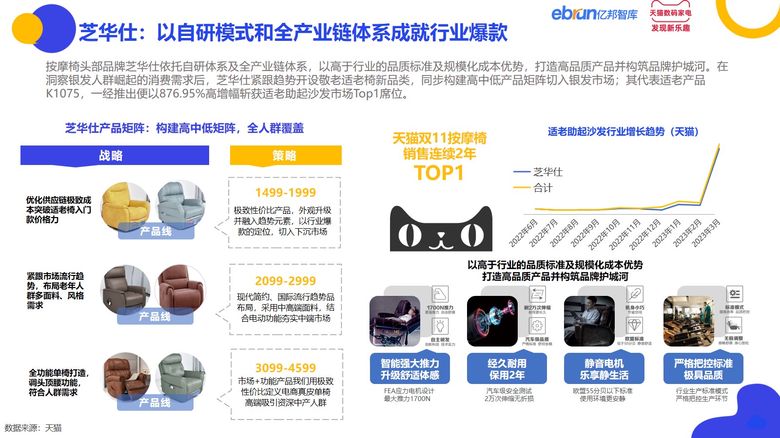 芝华仕:以自研模式和全产业链体系打造高品质产品并构筑品牌护城河,其针对银发人群设计的适老产品K1075,一经推出便以876.95%高增幅斩获适老助起沙发市场Top1席位。