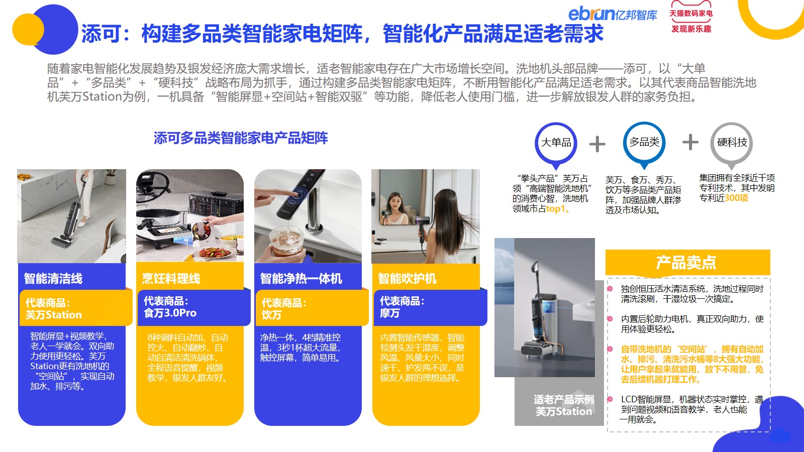 添可:以“大单品”+“多品类”+“硬科技”战略布局为抓手,通过构建多品类智能家电矩阵,不断用智能化产品满足适老需求。