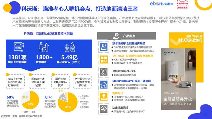 科沃斯:瞄准孝心人群机会点,专为银发族&孝敬人群开发“智能语音+极简版小程序”适老化功能,打造地面清洁王者。