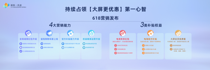 不仅如此,在营销升级上,电视淘宝将红包产品延伸到更多场域、推出AI语音领红包、逛店铺领红包、大小屏裂变领红包等,并同时推出了提升用户大促体验的“省钱购物车”,以及依托强补贴权益的“下单立减”、“权益推荐”等核心运营能力。