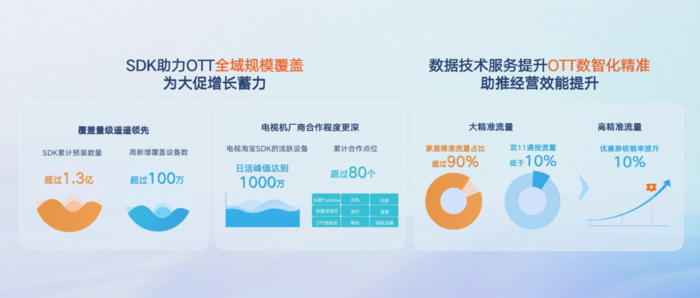 对此,电视淘宝CTO赖仪灵表示,电视淘宝实现了OTT的全域覆盖。基于全域的大规模覆盖,通过数据、技术的赋能,实现了OTT的高精准运营能力。