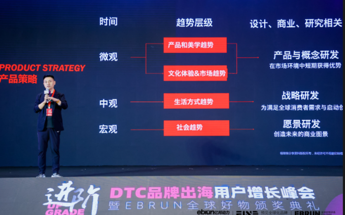 杨继栋教授表明,对于志在出海的DTC品牌来说,在做产品的过程中,应当尽力踩准各层级市场趋势的节点,形成自己的研发节奏和销售节奏,从而跑通商业模型。