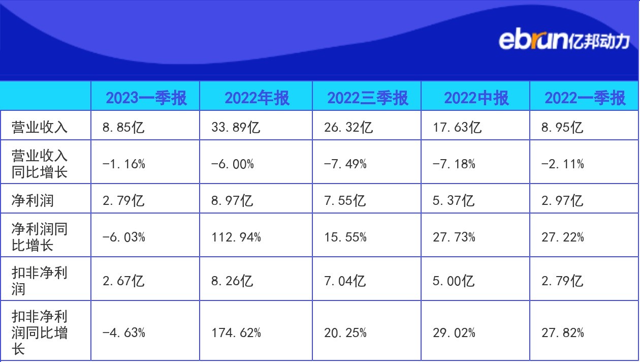 4月30日消息,亿邦动力获悉,康弘药业公布2023年一季度财报。财报数据显示,报告期内康弘药业营收达8.85亿元;净利润达2.79亿元。扣非净利润2.67亿元。