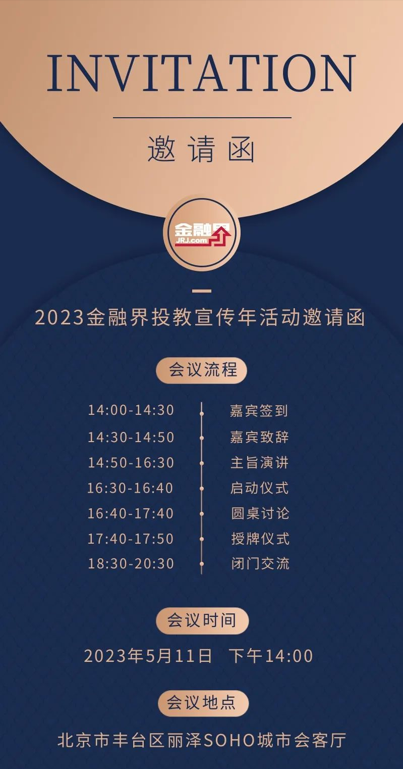 为深入贯彻落实党的二十大对经济金融工作的有关部署,厚植“理性投资、价值投资、长期投资”理念,在5.15全国投资者保护宣传日来临之际,金融界将联合多家金融机构共同发起投教宣传年活动,并于5月11日举办2023投资者教育融合发展研讨会暨金融界投教宣传年启动仪式,普益标准为支持单位,西南财经大学信托与理财研究所作学术支持。