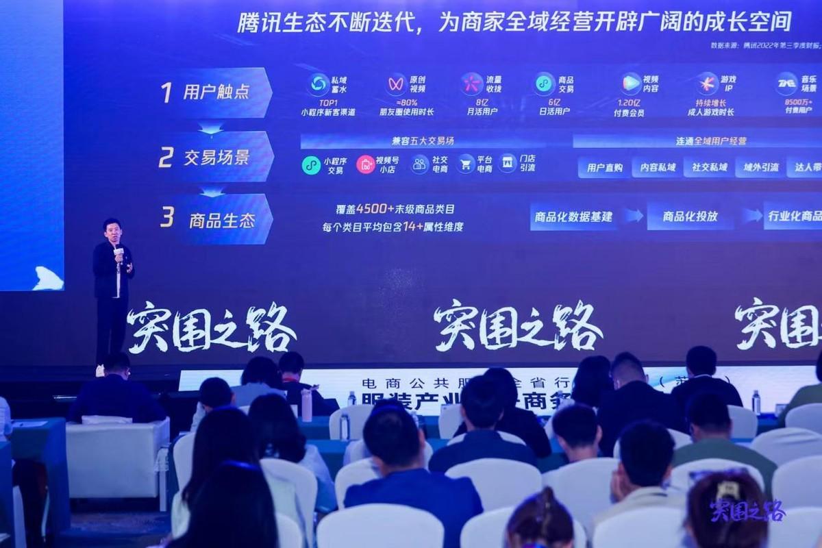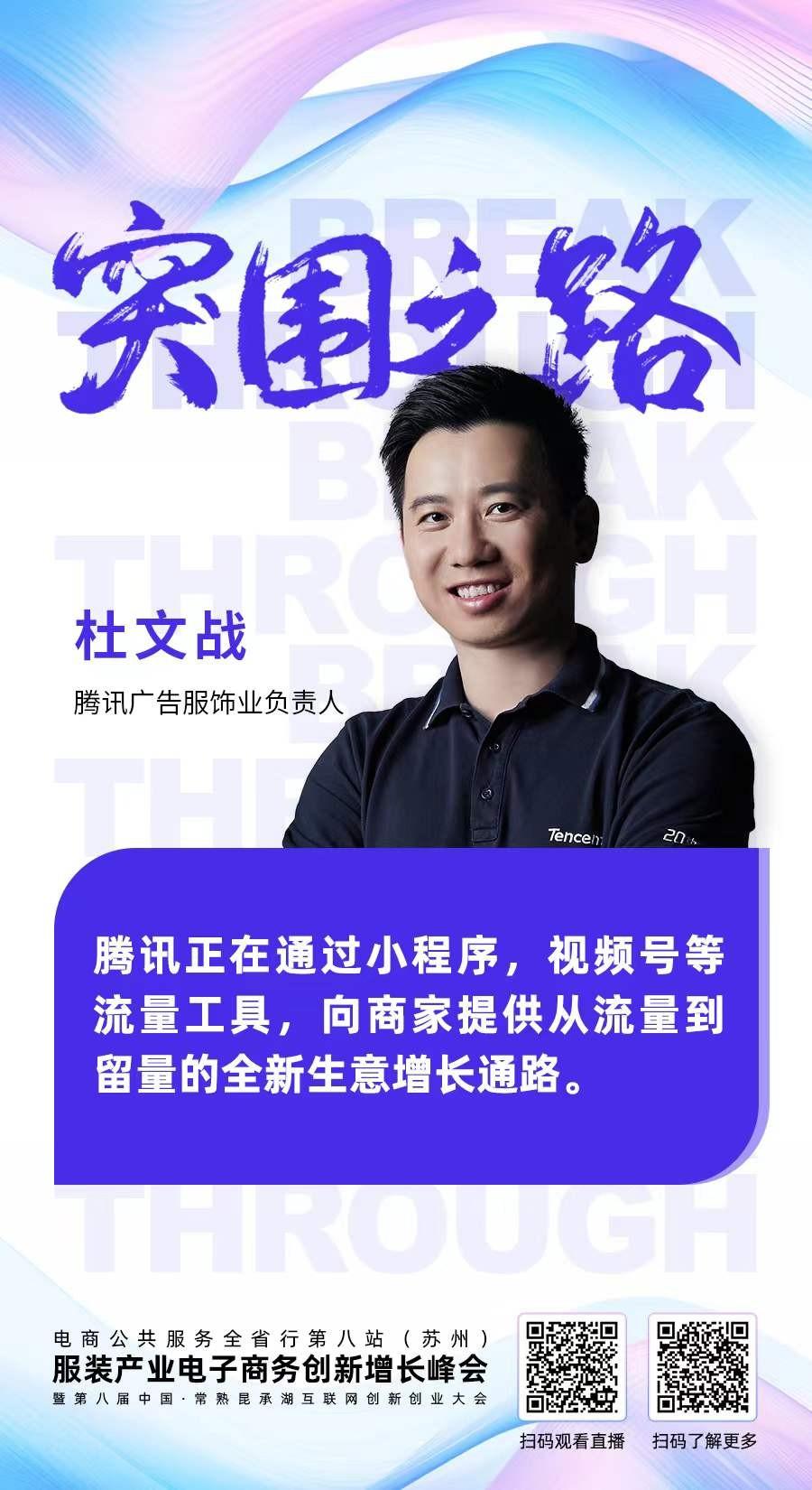 【亿邦原创】5月17日消息,在电商公共服务全省行第八站(苏州)暨服装产业电子商务创新增长峰会上,腾讯广告服饰业负责人杜文战发表了题为《拥抱视频号新机会,共创服饰生意新增长》的演讲。他指出,对于服饰行业而言,视频号是一片蓝海市场。杜文战表示,在腾讯体系内,可通过腾讯视频号中的工具,将流量留存至私域,利用公域流量与私域流量相互“滚雪球”。