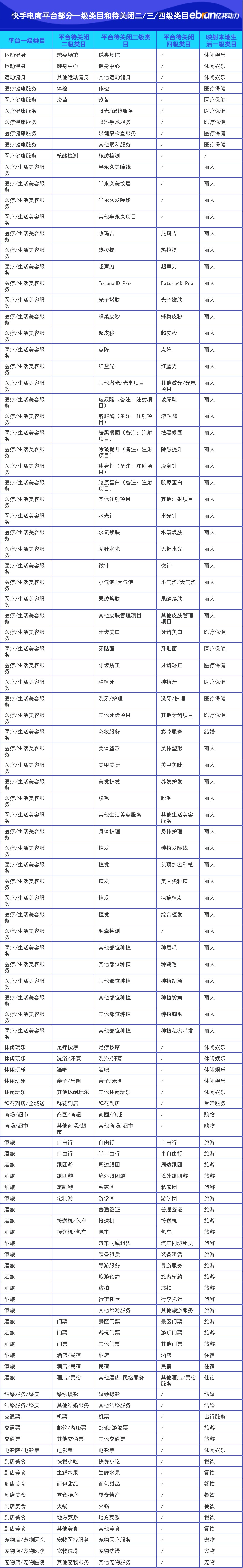 | 快手电商平台部分一级类目和待关闭二/三/四级类目 | |||||||||||